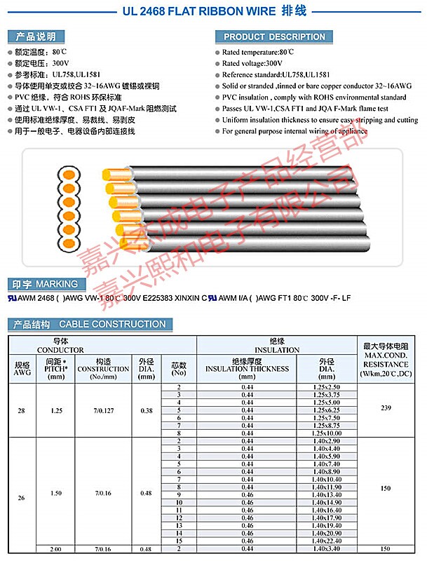 XINXIN electronic wire: UL American standard wire, environmental protection 2468-26#-8P red and white wire 7*0 16, 305 meters per roll