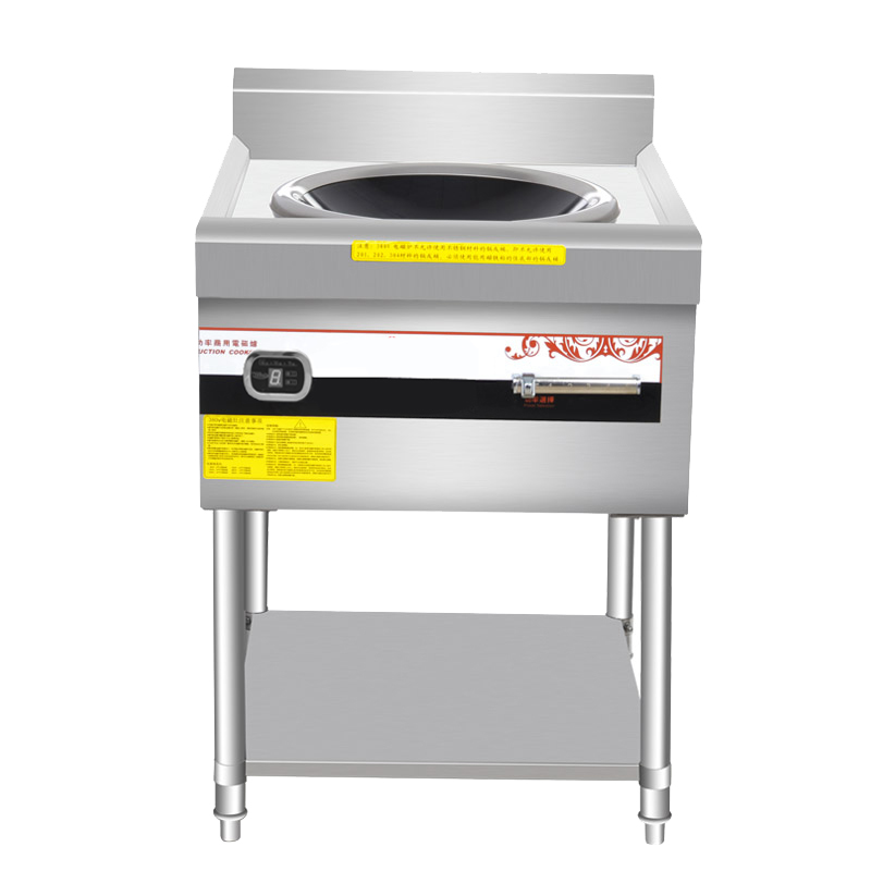 Single-head concave surface stir-fry stove with a shelf
