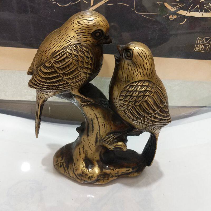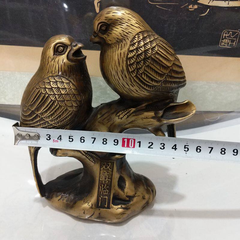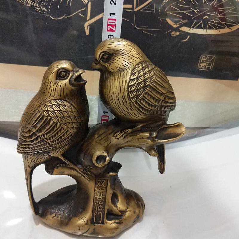 Pure Bronze Antique Double Bird Swing Piece Chubby Pair of Biking Door Crafts Gift Ancient Play Bronze Ware Collection Home Animal Decoration