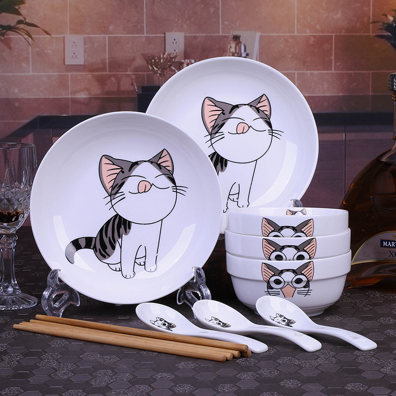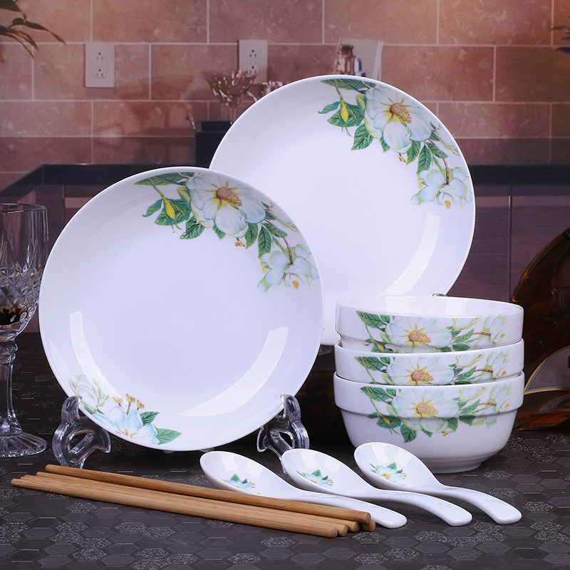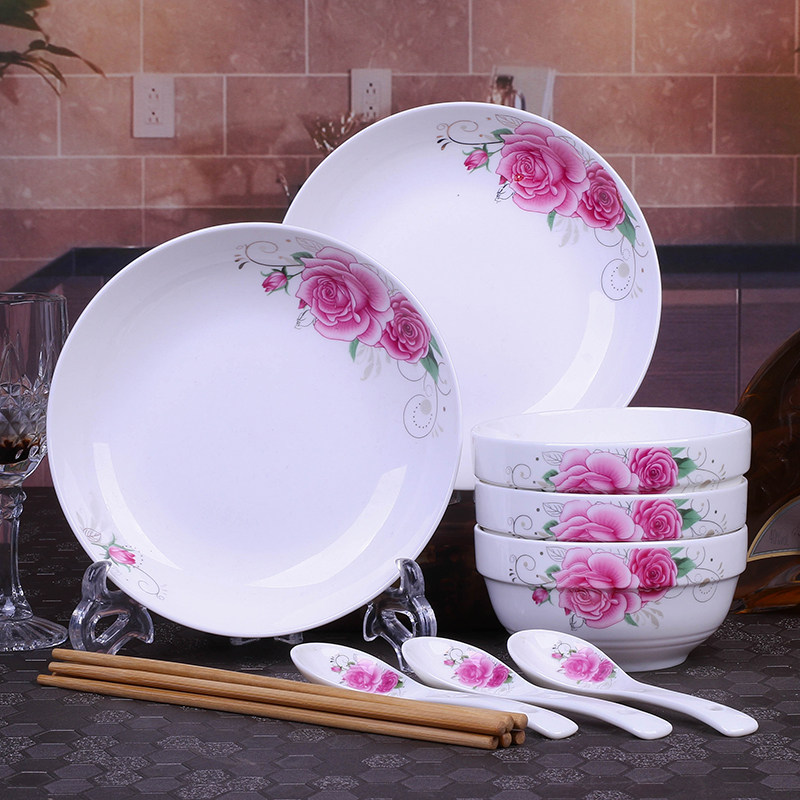 3 Bowls 2 trays 3 spoons 3 chopsticks Home Ceramic Bowls Tray Cutlery Sets Hotels Hotel Rice Bowls Disc Plates Can Microwave