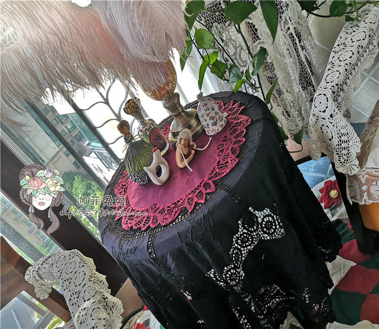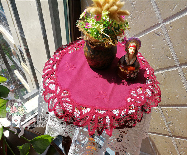 Foreign trade Original single * Bathyorie Hook Wide Side Super Beauty Deep Red Ink Green Pure Cotton Circular Dish Cushion Cover Towels
