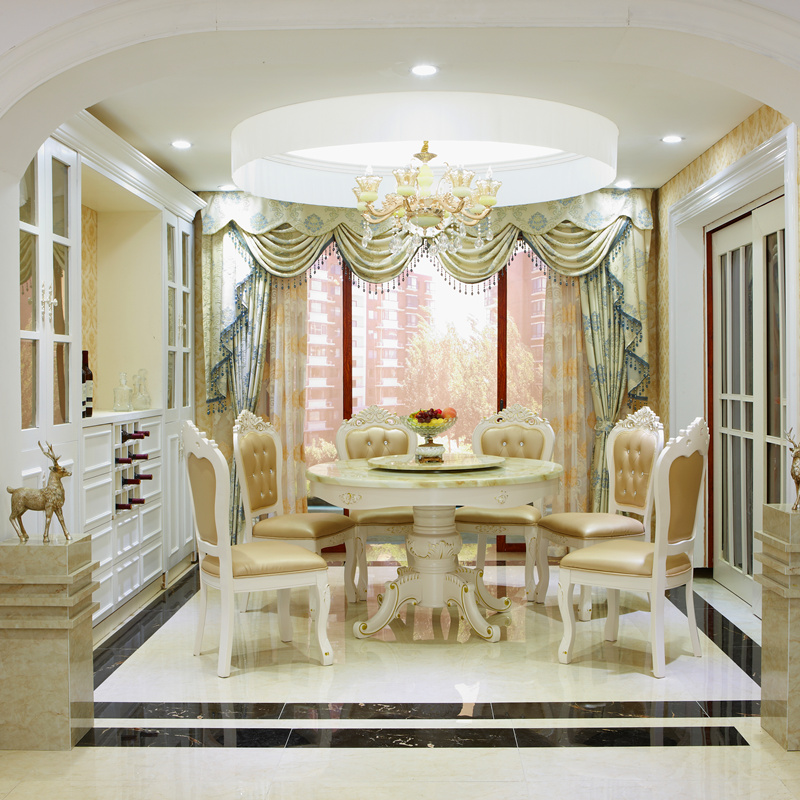 European dining table and chairs dining room combination French marble round table solid wood dining table household small apartment with turntable
