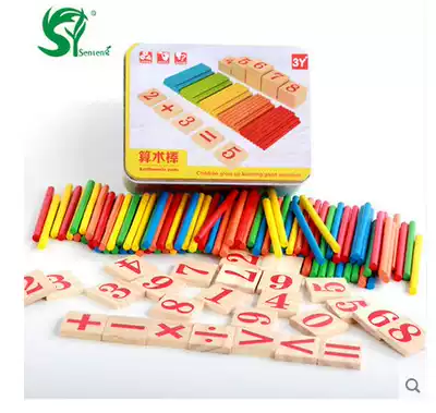 Wooden kindergarten beneficial intelligence 3-6 years old children's arithmetic children iron box number sticks early education operation plus and minus toys