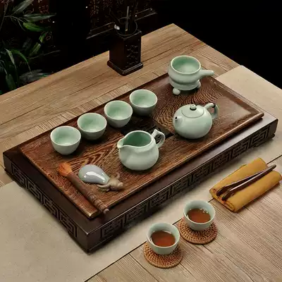 Purple sand tea set set Chicken wing wood tea plate Fu word whole block drainage Ge Kiln tea set Set Ru Kiln Kung Fu tea set