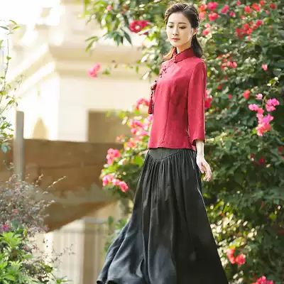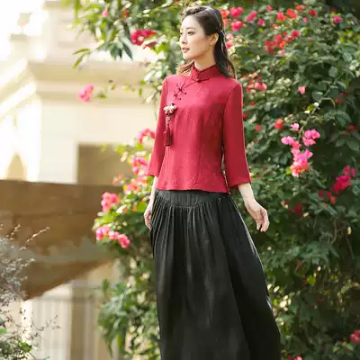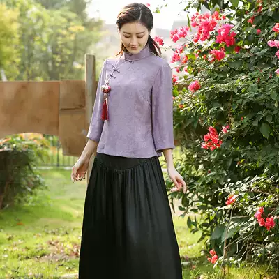 Autumn Water Ballad Original (Purple Yan Luo) Silk improved cheongsam top female high-end retro Republic of China style women's clothing