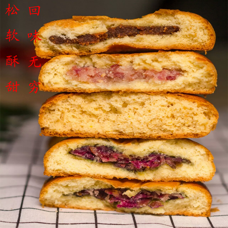 Yunnan special-production Qu Jing Glutinous Rice Cake Yunwei Mooncake Ham Flowers Five Benevolent Bean Sand Crisp Nutritional Pastry Snack Foods