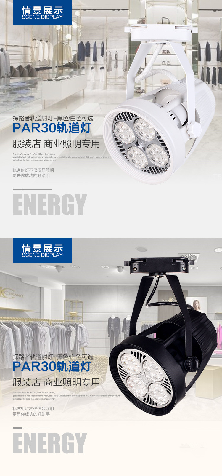 LED Rail Lights 24W 35W 40W PAR30 LED Rail Lights Clothing Show Jewelry Show Lights