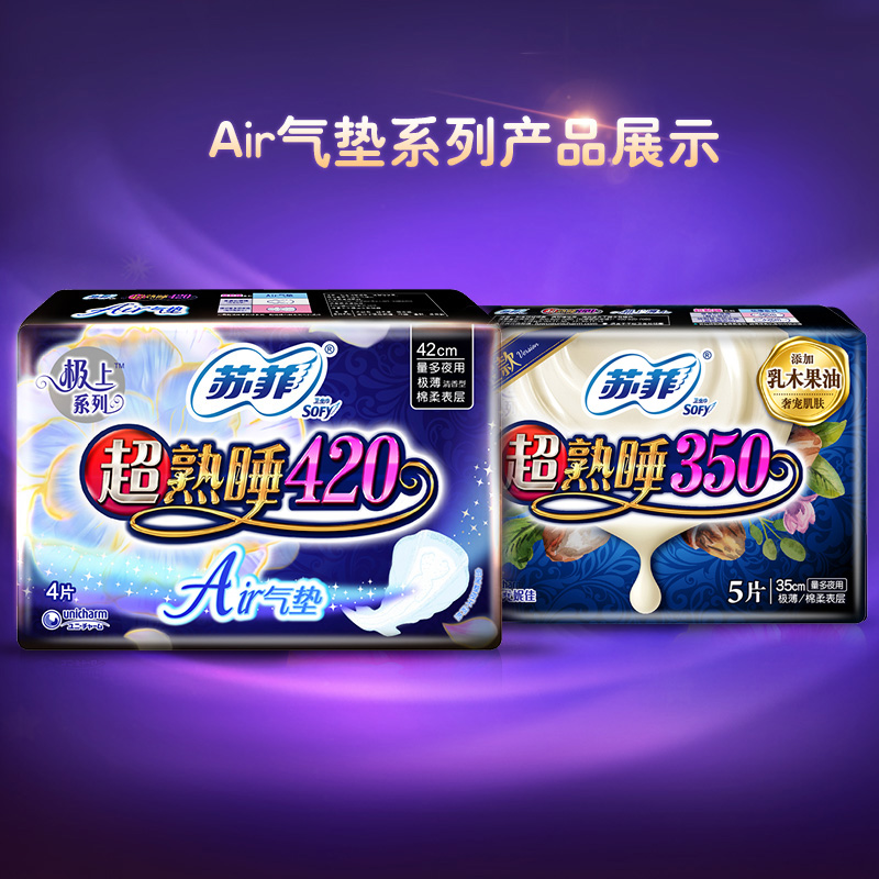 Sophie sanitary napkin female super sleep Air cushion 350 420 super long night with aunt towel combination whole box batch