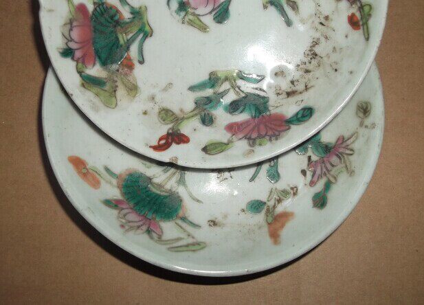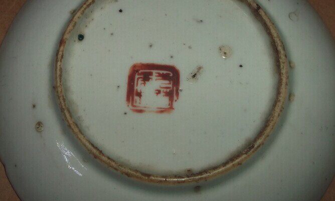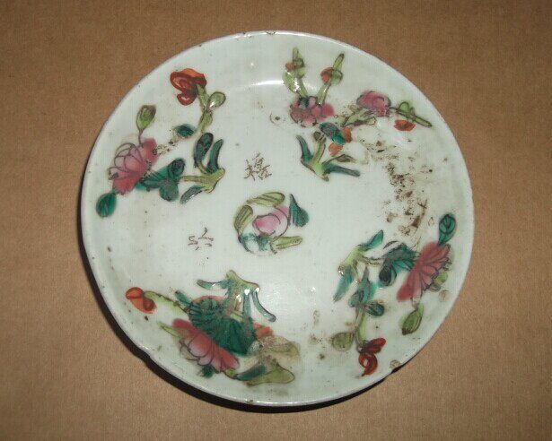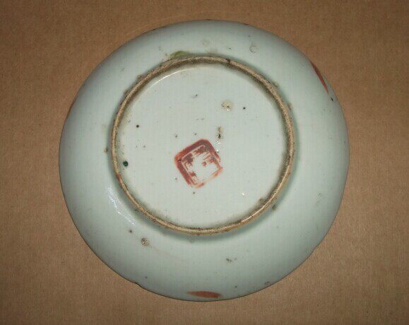 The Qing Dynasty color flower porcelain tray 1 pairs of seal body light-thought-end bottom-style folk nostalgic swing piece porcelain