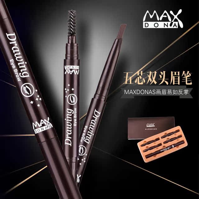 MAX double head eyebrow pen with brush waterproof and anti-sweating and persistent painting eyebrow powder with 5-support replacement