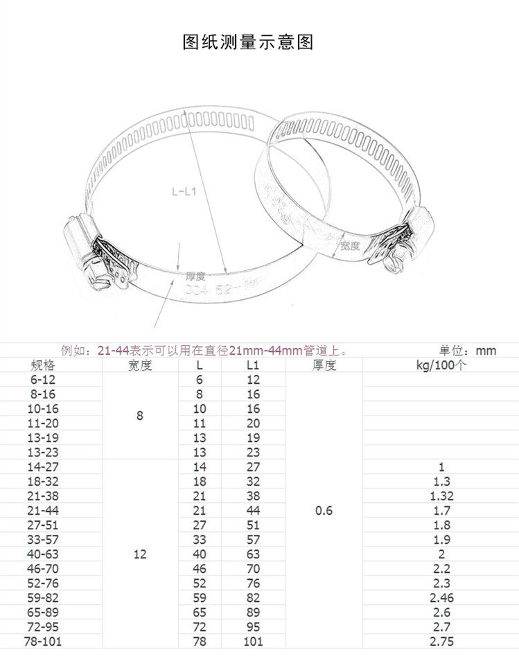 304 stainless steel hose hoop water pipe hoop ventilation pipe clamp strong hoop soft pipe hoop gas pipe hoop