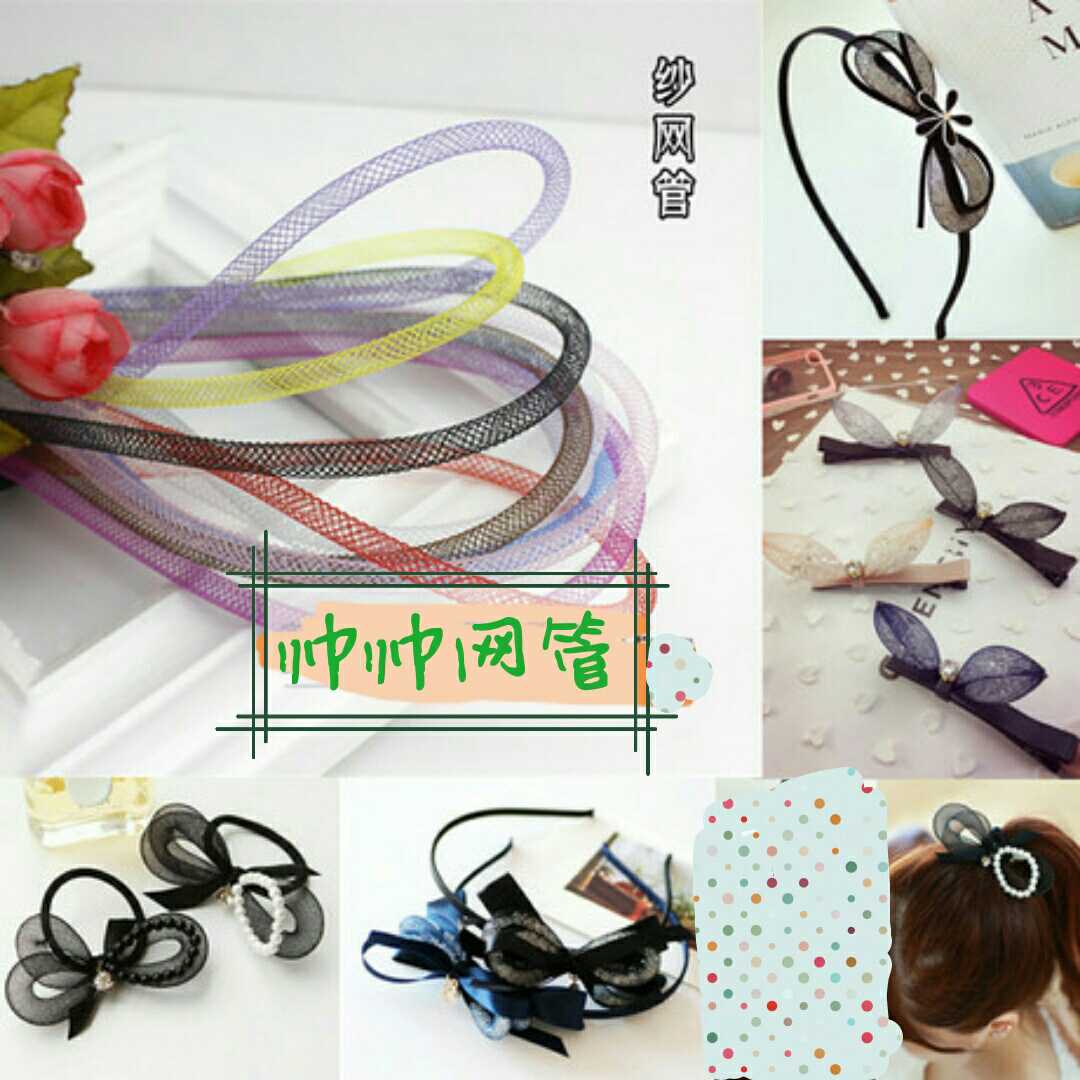Shuai handsome 4MM ribbon mesh tube handmade DI ya hair accessories Korean bow hairclip floral headdress accessories elastic mesh tube