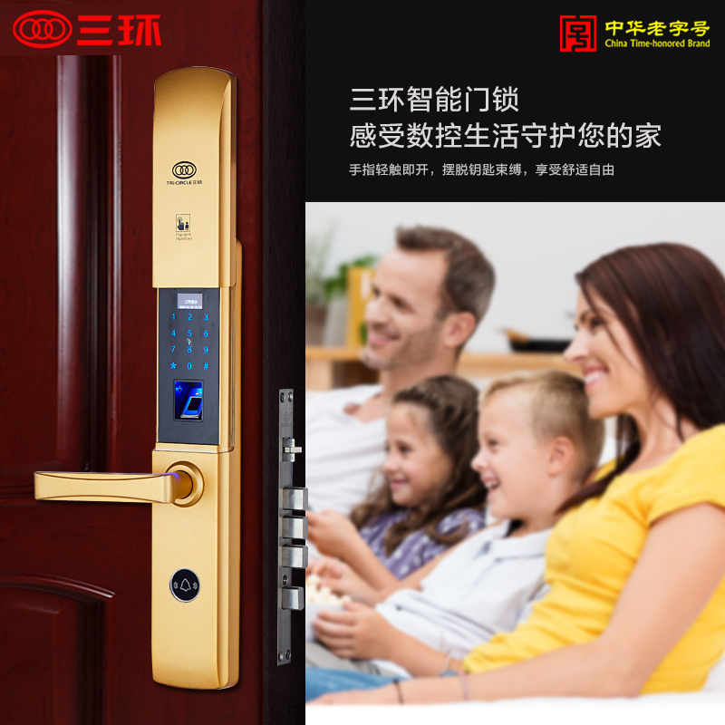Three-ring streamlined sliding cover fingerprint lock entry door security door lock Home Office smart door lock 538