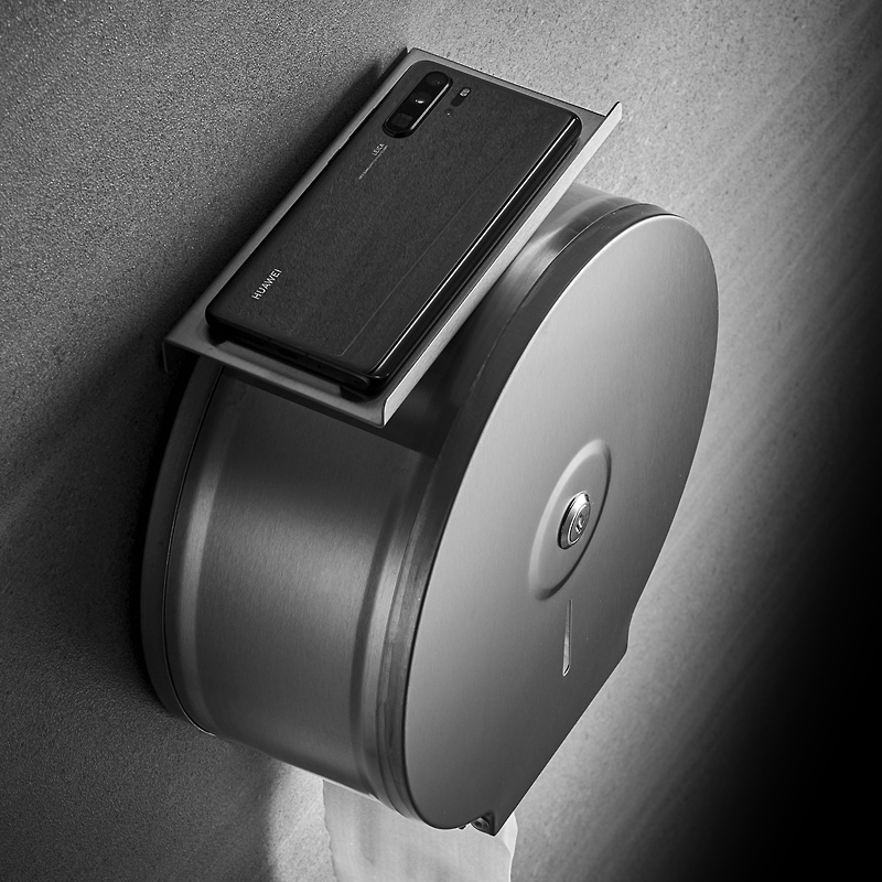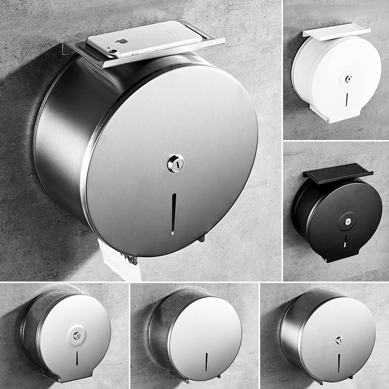 Large Roll Paper Case Wall-mounted Makeup Room Large Stock Paper Toilet Paper Shelf Public Toilet Hotel Commercial Stainless Steel Drum Toilet Paper Silo