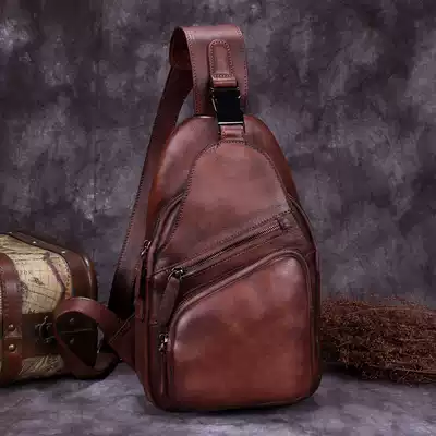 Men's bag handmade leather bag men's bag shoulder bag shoulder vintage chest bag men's leather soft leather head layer cowhide casual