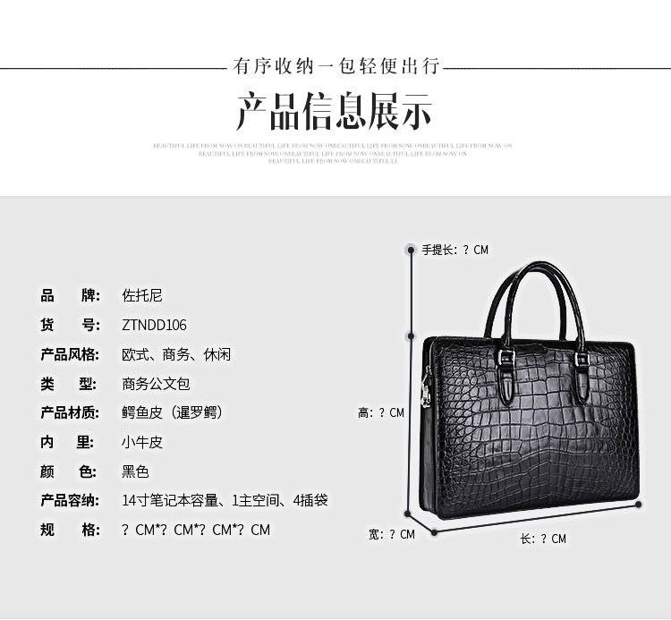 Zoonie Crocodile belly leather handbag men briefcase single shoulder bag no splicing whole face leather belly code lock