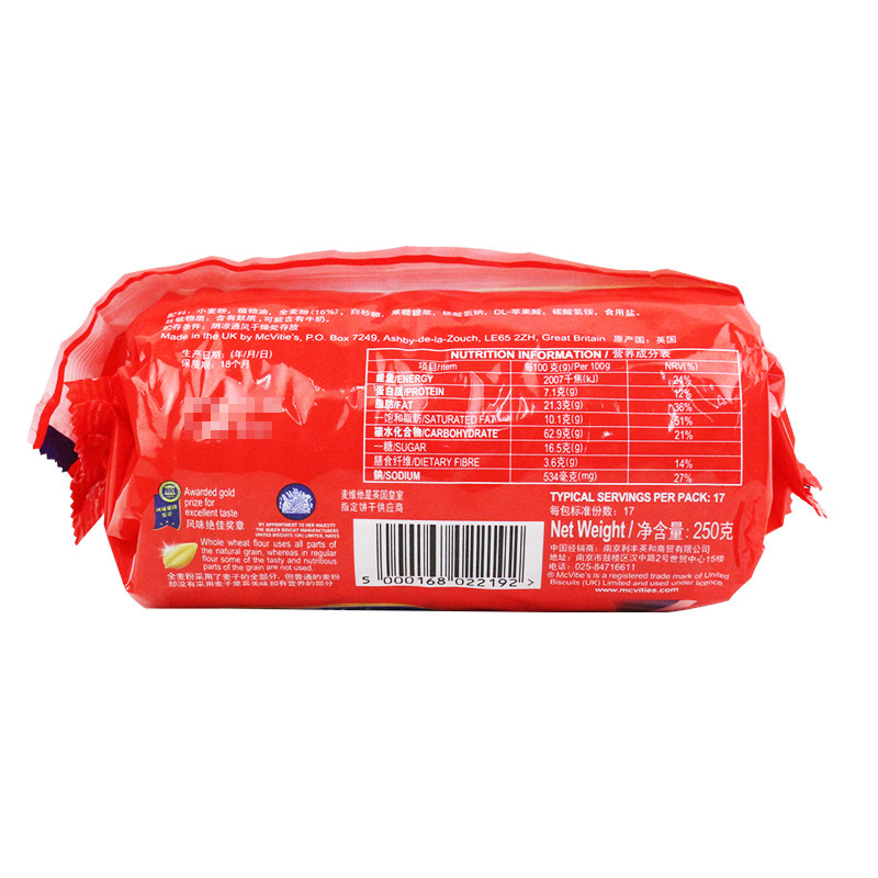Imported McVita Whole Grain Oatmeal Digestive Biscuits Coarse Grain Meal Replacement Fiber Energy Bar Baked Wood Bran Cup Raw Materials
