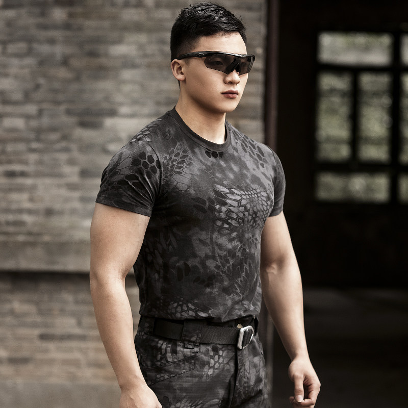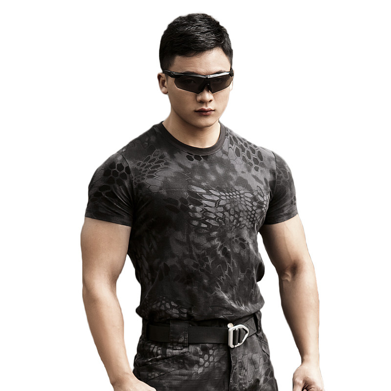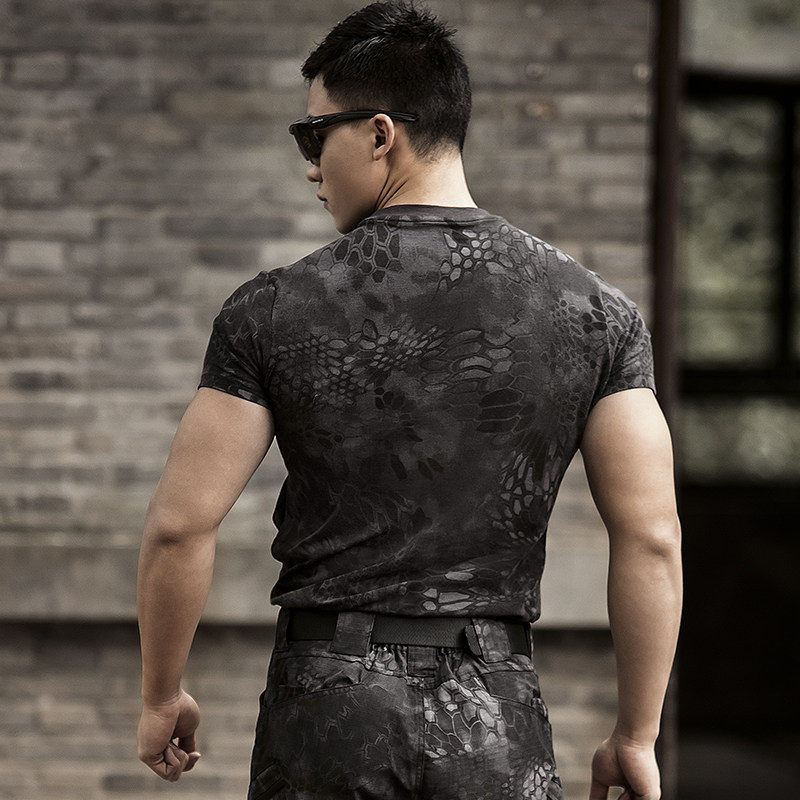 Outdoor python camouflage tactics short sleeve men's special forces crew neck cotton trim tight T-shirt breathable camouflage clothing summer