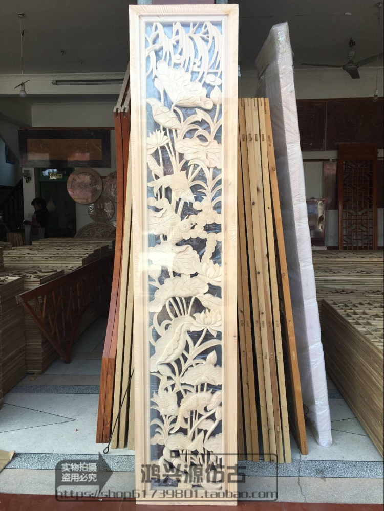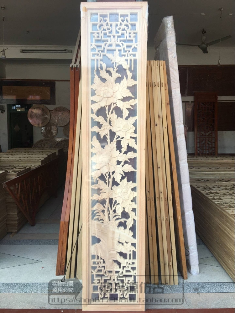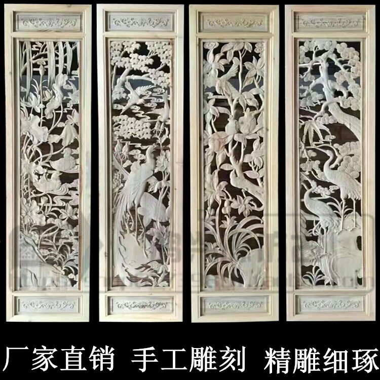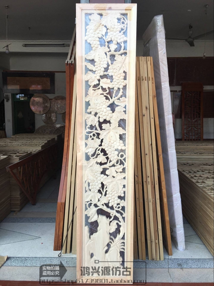 Dongyang wood carving solid wood hand carved pendant Chinese living room TV background wall hanging strip screen Antique doors and windows