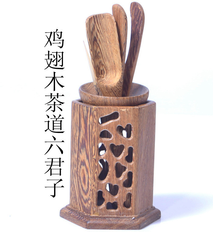 Tea Aisle Accessories Black Sandalwood Six Gentleman Cups Clip Tea Spoon Needle Chicken Wings Wood Square Hollowed-out Kutian Tea With Special Price
