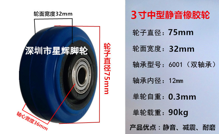 3-inch 4-inch 5-inch silent rubber wheels flatbed truck cart trolley wheels shelves dining car small cart universal wheels