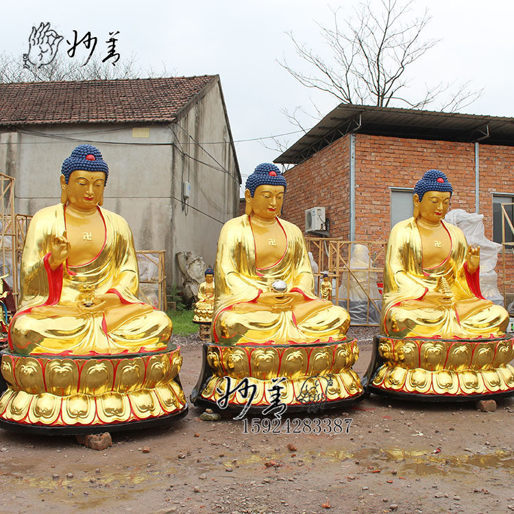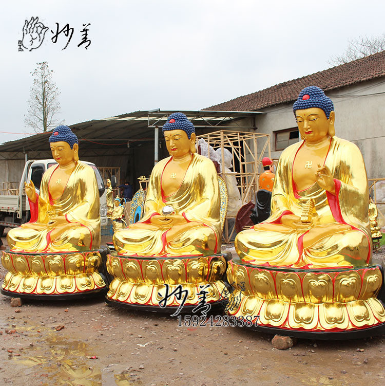 2m Sambo Buddha Amitabha Buddha Shakyamuni Pharmacist Buddha Resin Fiberglass Buddha Statue Feng Shui decoration