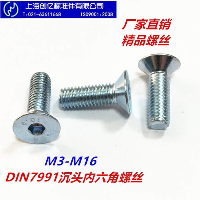 Environmentally friendly galvanized DIN 7991 hexagonal screw flat head hexagonal bolt M4M3 M2 screw full tooth