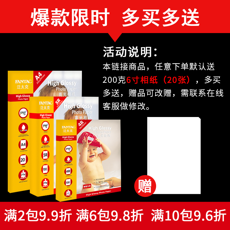 Pan Taike high gloss photo paper Suede A6 photo paper 6 inch 5 inch 7 inch 210g 4r waterproof rc photo paper a4 inkjet printing photo paper Household image paper Special printing photo paper Camera album paper
