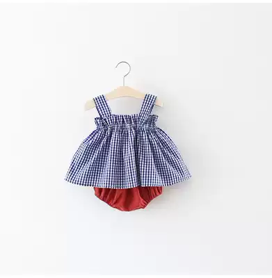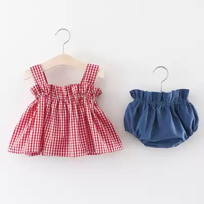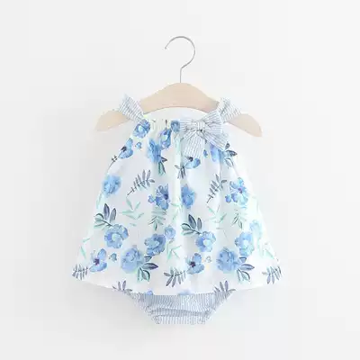 Summer new 0-2 year old baby girl suspender set thin floral top bread pants fashion two-piece set