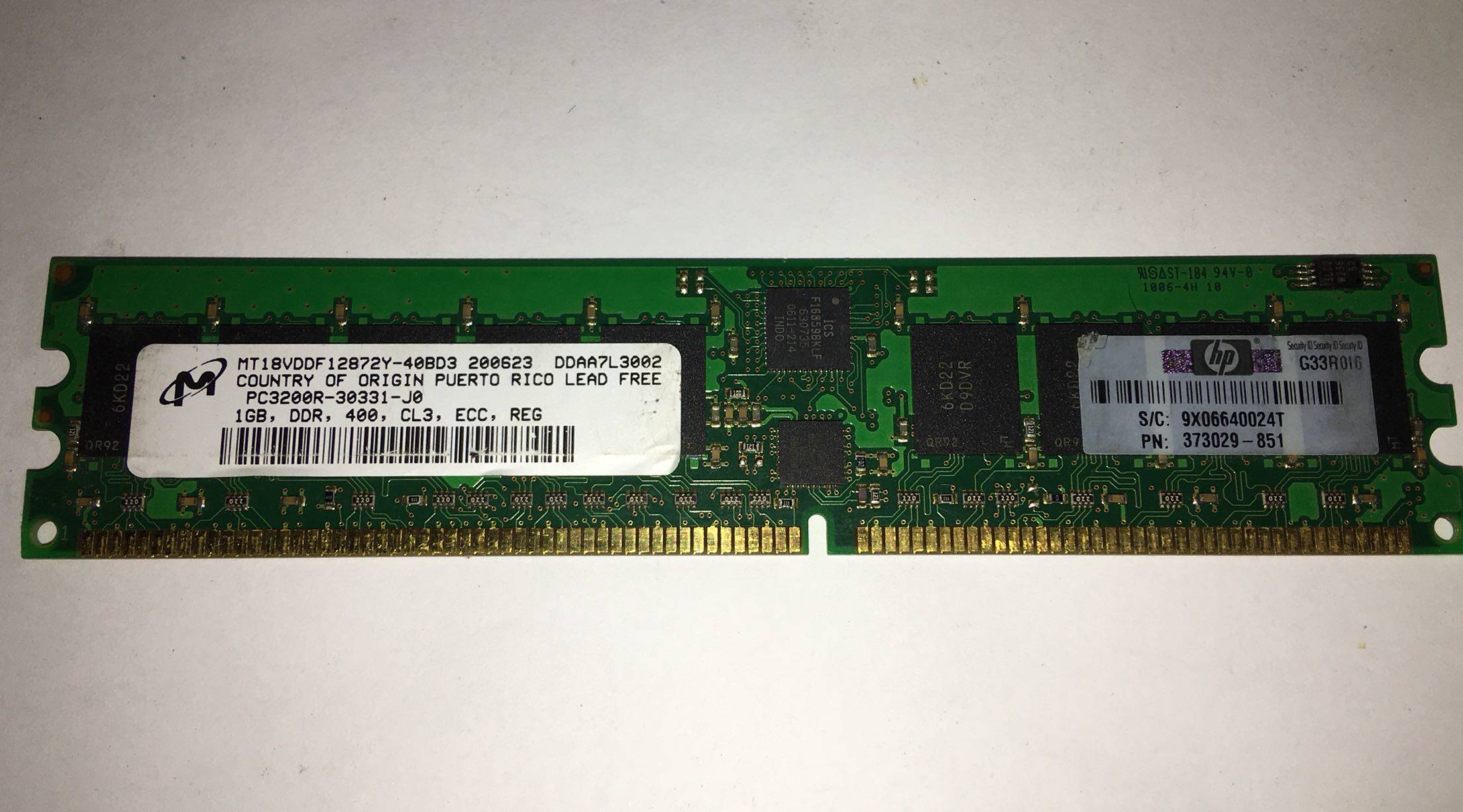 HP Genuine Server Memory Magnesium 1G DDR 400 ECC REG PC3200R 373029-850