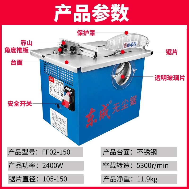 Dongcheng dust-free saw table saw multi-function solid wood floor dust-free chainsaw FF02-150 dust-free saw wood floor