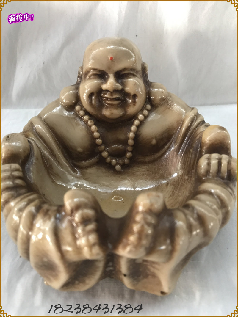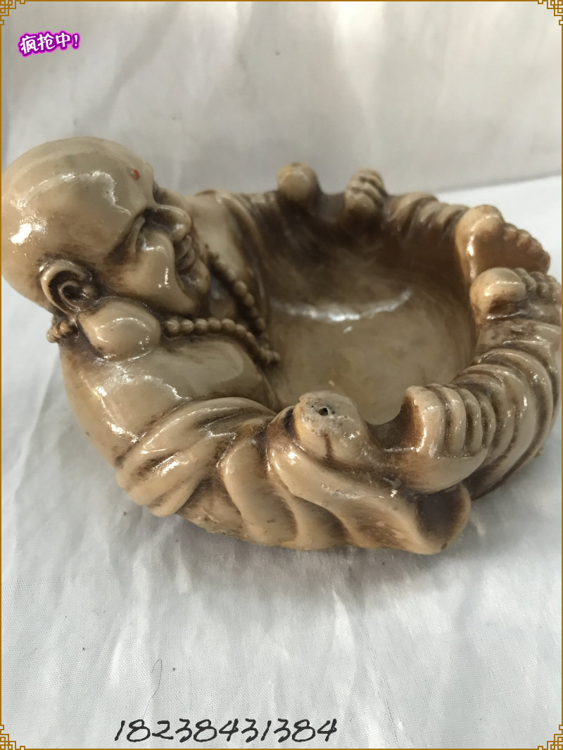 Hot imitation artwork collection Antique-made old resin ashtray home decoration parts for the Mailford Laugh Buddha