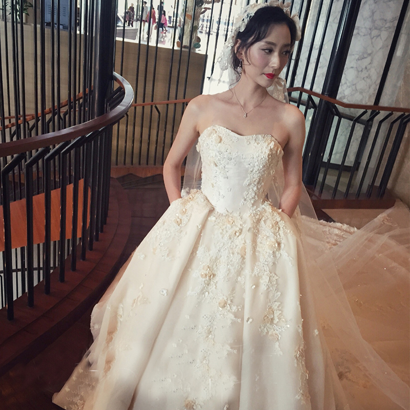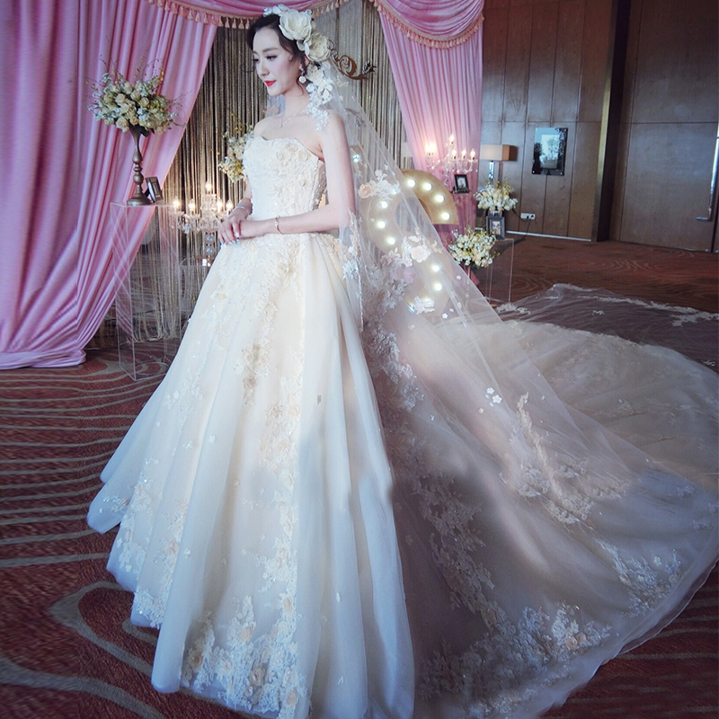 Bandeau main wedding dress 2021 new princess bride cover pregnant belly long tail pregnant women light flowers out of the yarn