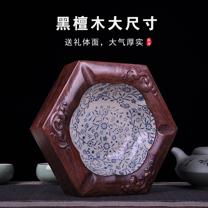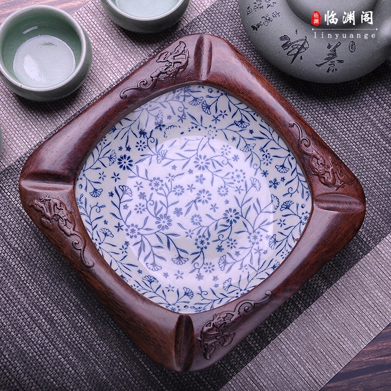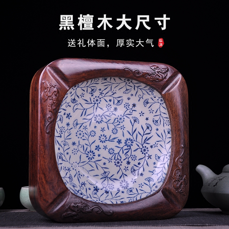 Fashion ashtray New Chinese style creative ebony ashtray High-grade mahogany carving craft gift decoration solid wood ashtray