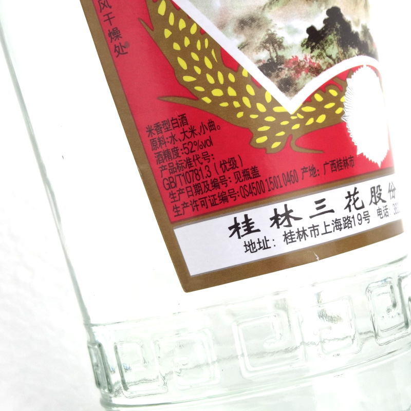 Guangxi speciality Sanbao Guilin Three-flower wine 52 degrees 480ml hole Tibetan cellar Tibetan glass bottle rice fragrant type old Guilin wine
