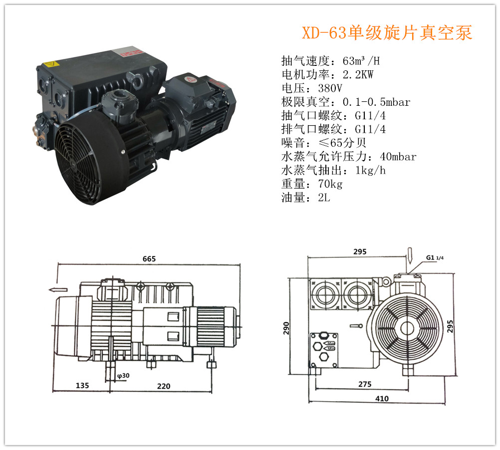 Single-stage rotary vane vacuum pump XD63 series 2 2KW electric pump engraving vulcanization blister machine with Puxu direct sales