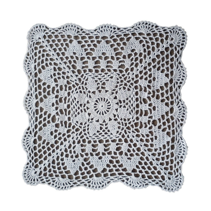 Auspicious home pure handmade cotton thread crochet crochet table mat hollow Nordic pastoral shooting background square placemat 35CM
