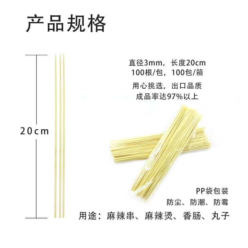 Disposable bamboo sticks 20cm*3mm Barbecue sticks Grilled sausage chicken fillet fried skewers meatballs Bamboo sticks barbecue utensils