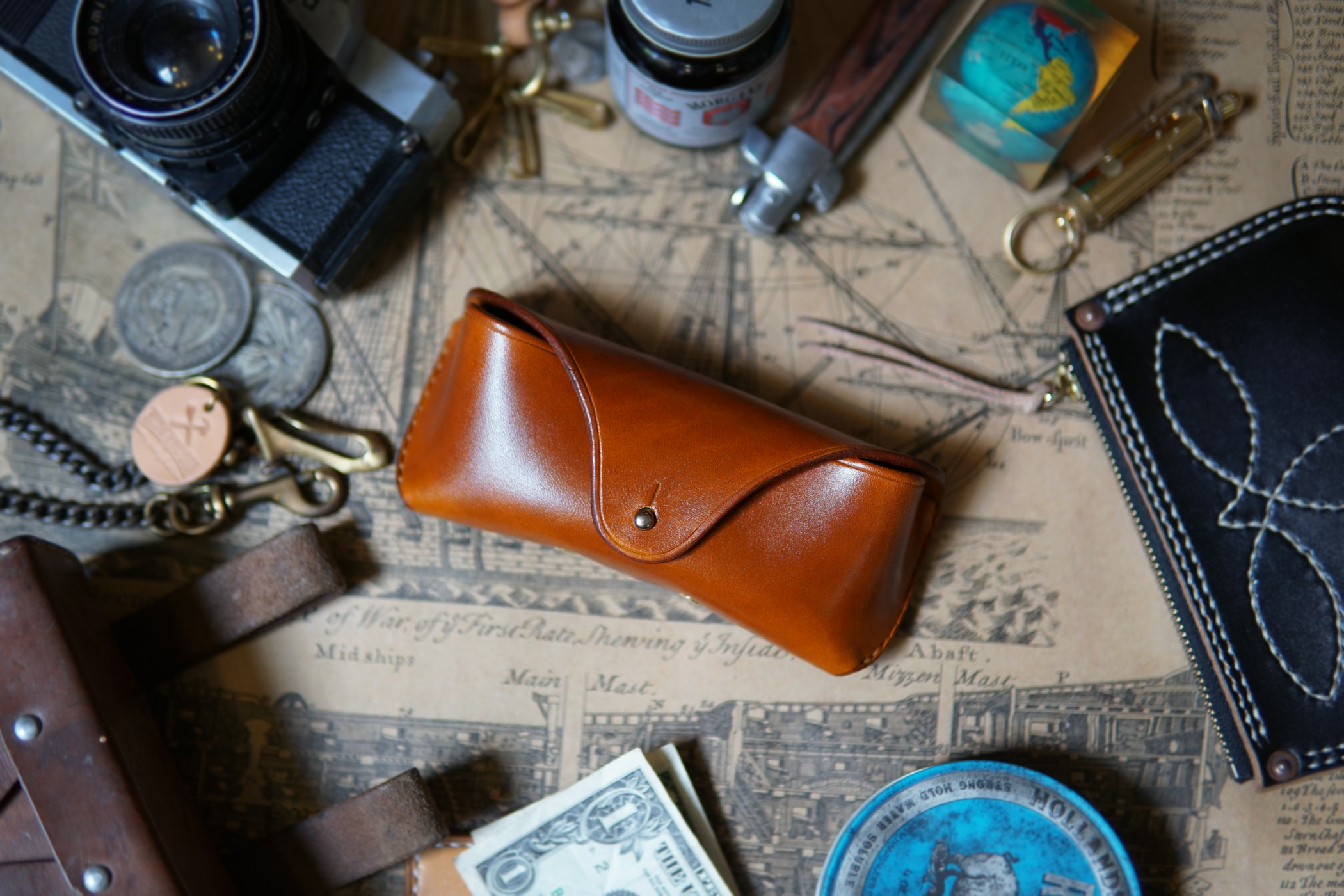 Italian first layer leather retro simple cowhide vegetable tanned leather anti-pressure sunglasses sunglasses case glasses bag storage bag