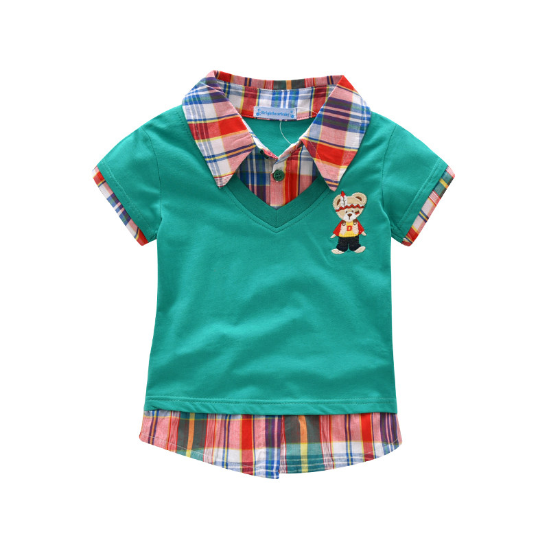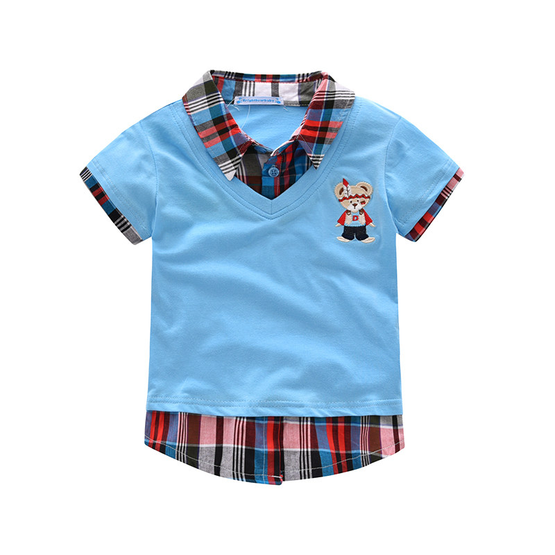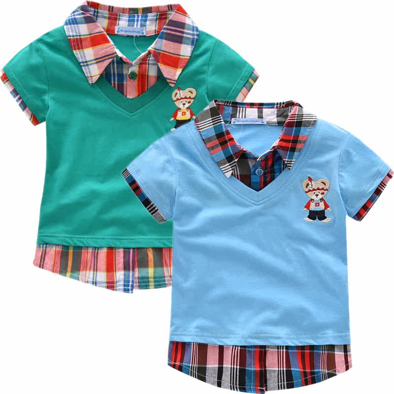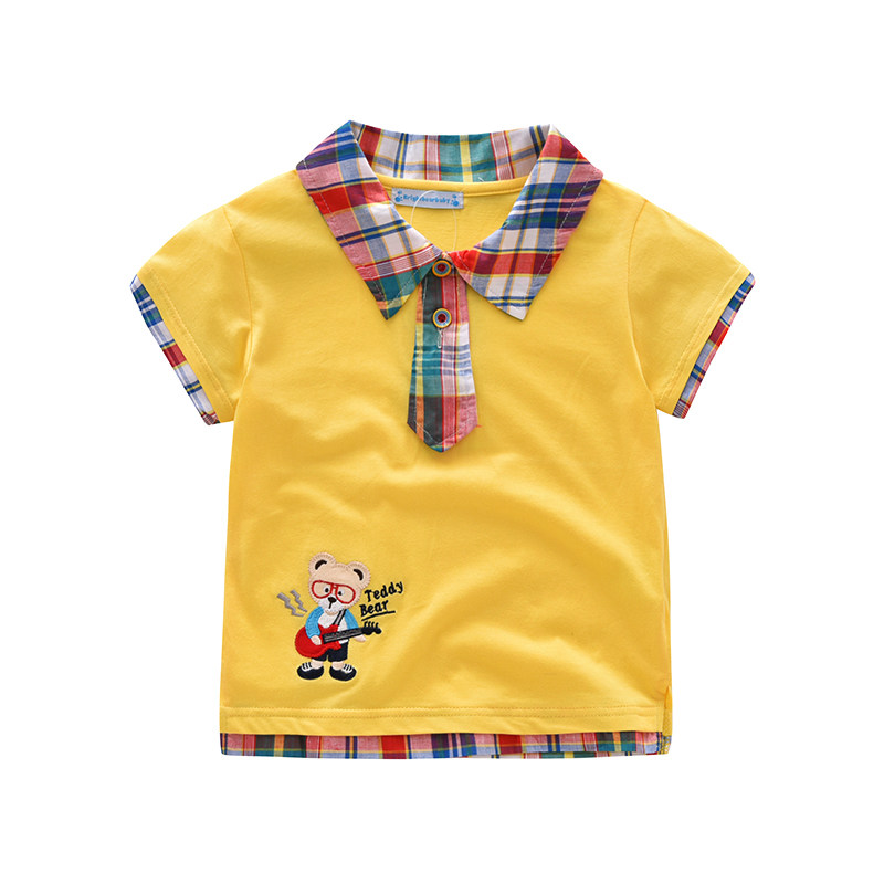 Male baby short-sleeved T-shirt fashion summer new bear children's clothing boy splicing tide children's shirt Korean version of the collar lapel T