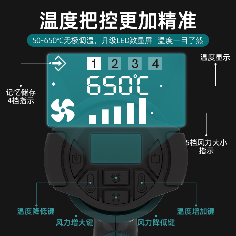 Constant Motion Industrial Grade Hot Wind Gun Count Thermoregulation Adhesive Film Baking Gun Heat Shrink Film Baking Gun Plastic Welding Gun Electric Ventilator