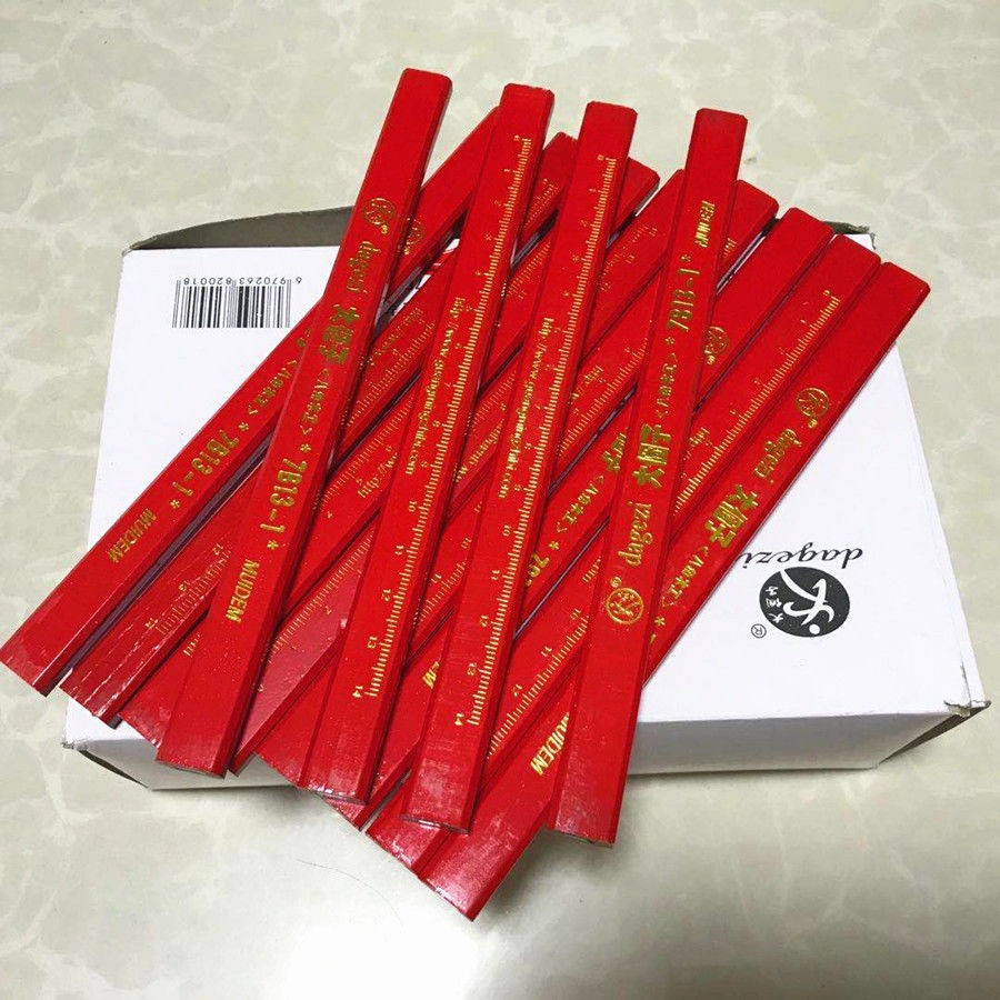 Large carpenter flat core scrutinized pencil woodworking special coarse black pencil red core pencil