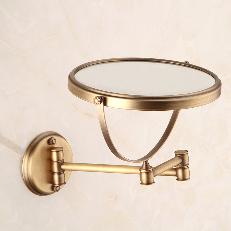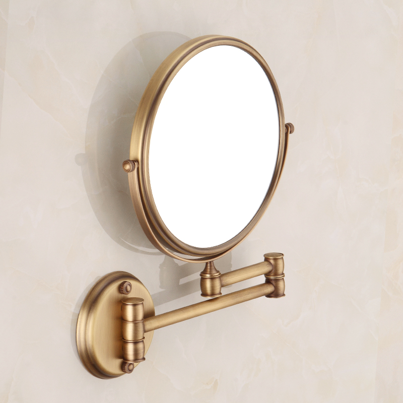 All-copper antique beauty mirror Bathroom makeup mirror Double-sided folding telescopic mirror Powder room magnifying glass free hole