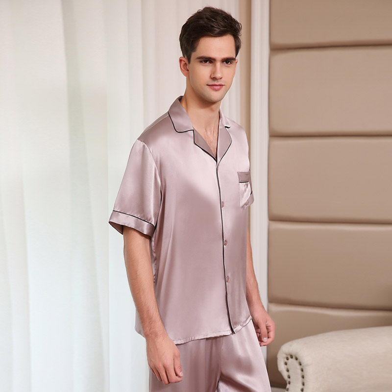 Meri Taman men's silk pajamas Mulberry silk pajamas men's summer short-sleeved shorts two-piece silk home clothes