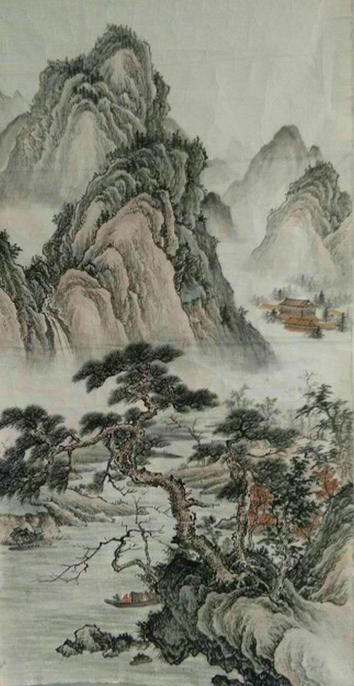 Live-action Hand-painted Landscape Painting and Painting Water Ink State Painting Painting Works Four-size Office Living Room Decoration