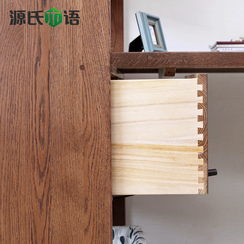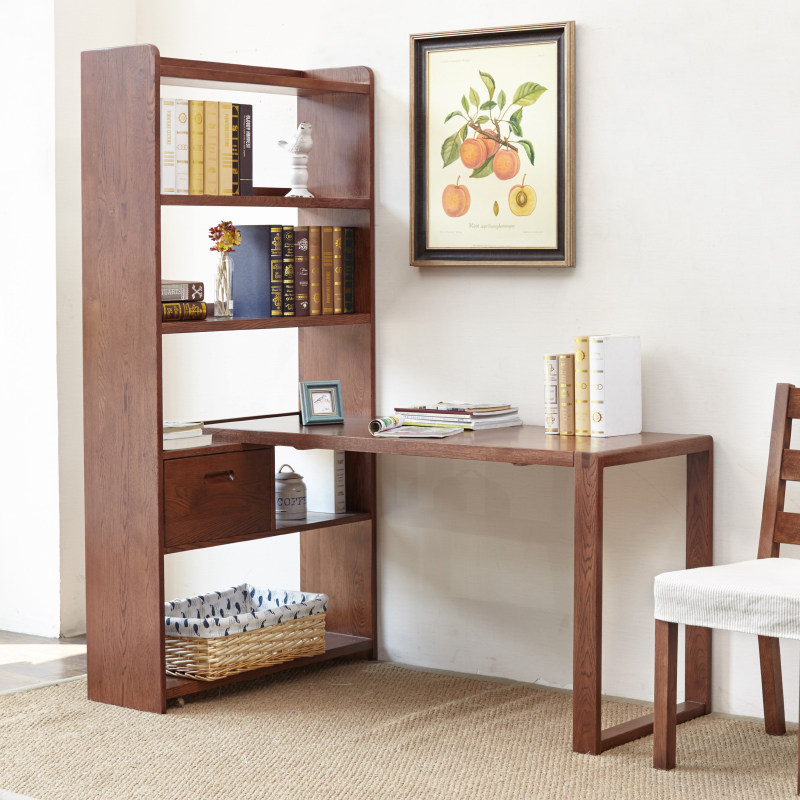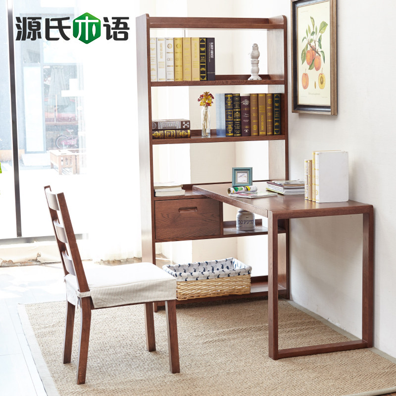 Genji wood language Pure solid wood desk Simple home desktop computer desk Oak corner bookshelf combination desk