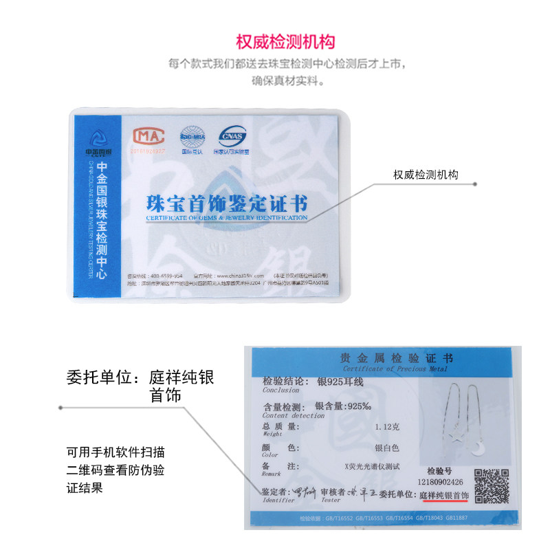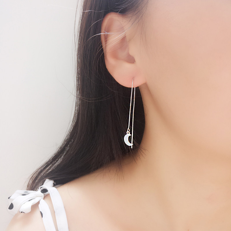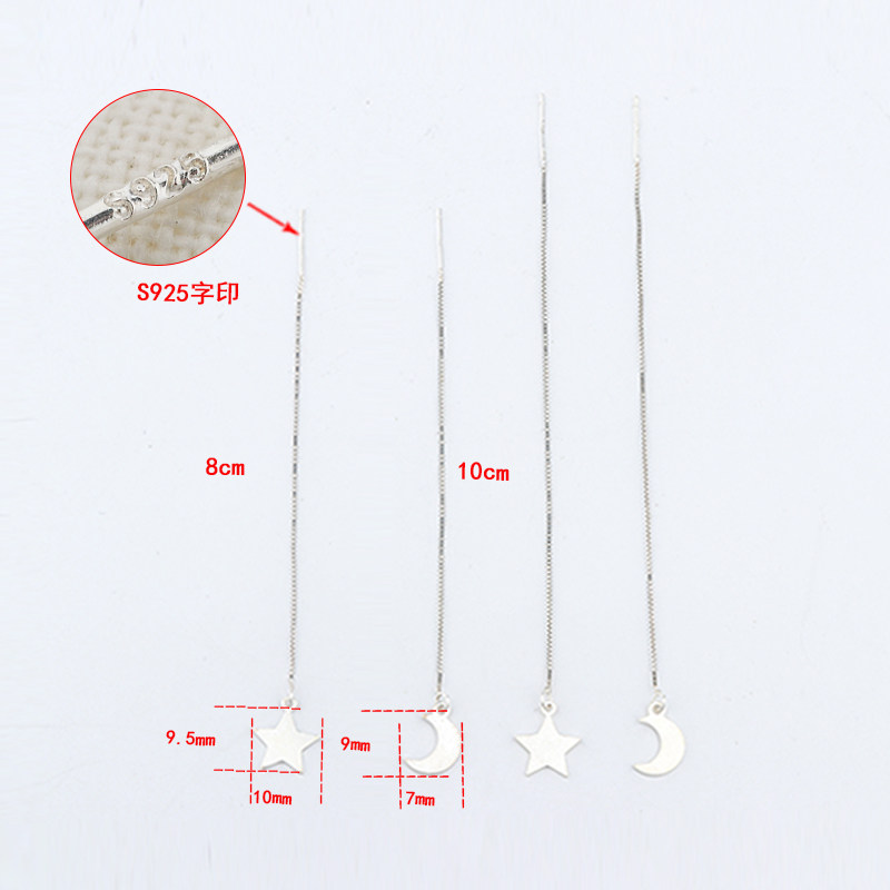 S925 Pure Silver Korea Temperament Brief Long Version Personality 100 Hitch Stars Moon Ear Neckline Pentagram Ear Pendant