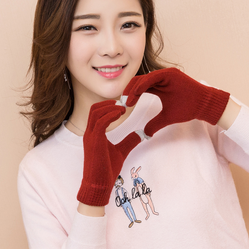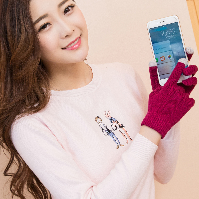 Spring Autumn Winter Touch Screen Wool Thread Knitting Gloves Men's and Women's Touch Screen Warm Cashmere Touch Screen Gloves Women's