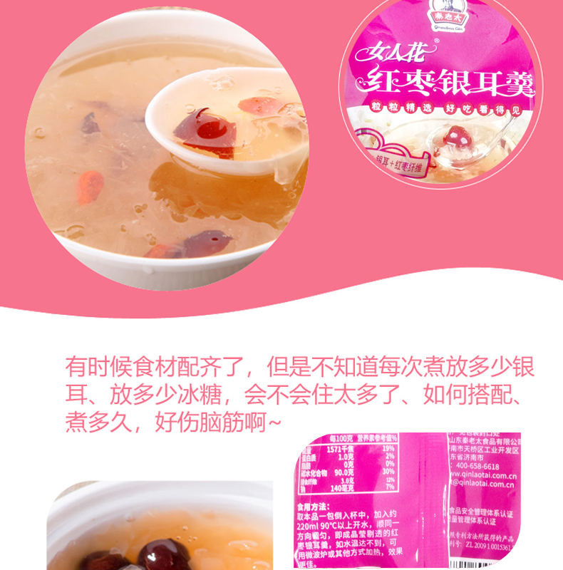 Lotus root powder gold silk small date (add 8%) lily (add 3%) silver ear (add 3%) red date fiber (add 3%) malt burnt essence glucose red