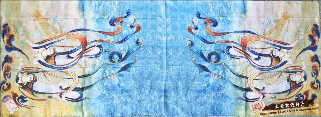 Scarf Woman Mulberry Silk Dunhuang Mural Painting Double Flying Sky National Wind Real Silk Long Version Multifunction Silk Scarf Shawl